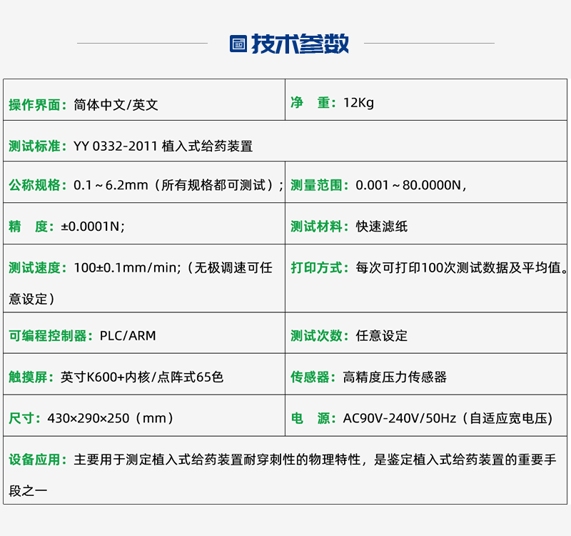 NCC0332-C給藥裝置耐穿刺性測(cè)試儀是國家檢驗(yàn)生產(chǎn)廠家產(chǎn)品性能的高效檢測(cè)設(shè)備,符合YY 0332-2011 植入式給藥裝置標(biāo)準(zhǔn)。實(shí)時(shí)顯示穿刺力曲線測(cè)試結(jié)果及最大刺穿力數(shù)據(jù)??涩F(xiàn)實(shí)F0到F5峰值數(shù)據(jù)。針對(duì)測(cè)試結(jié)果自動(dòng)判斷,不合格啟動(dòng)自動(dòng)報(bào)警,并由打印機(jī)打印出測(cè)試數(shù)據(jù)及結(jié)果以供分析。是國家檢驗(yàn)生產(chǎn)廠家產(chǎn)品能力的有效檢測(cè)手段。