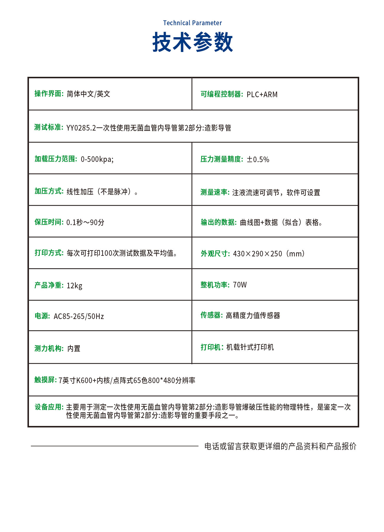 血管爆破壓測(cè)試儀測(cè)試標(biāo)準(zhǔn):YY0285.2一次性使用無(wú)菌血管內(nèi)導(dǎo)管第2部分:造影導(dǎo)管