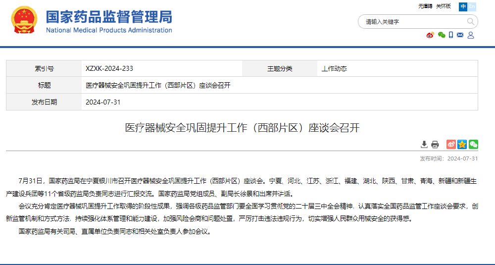 醫(yī)療器械安全鞏固提升工作(西部片區(qū))座談會召開