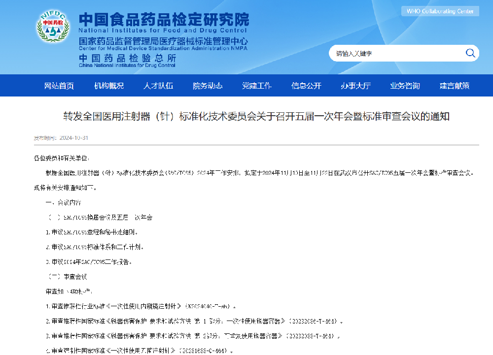 轉(zhuǎn)發(fā)全國醫(yī)用注射器(針)標準化技術(shù)委員會關(guān)于召開五屆一次年會暨標準審查會議的通知