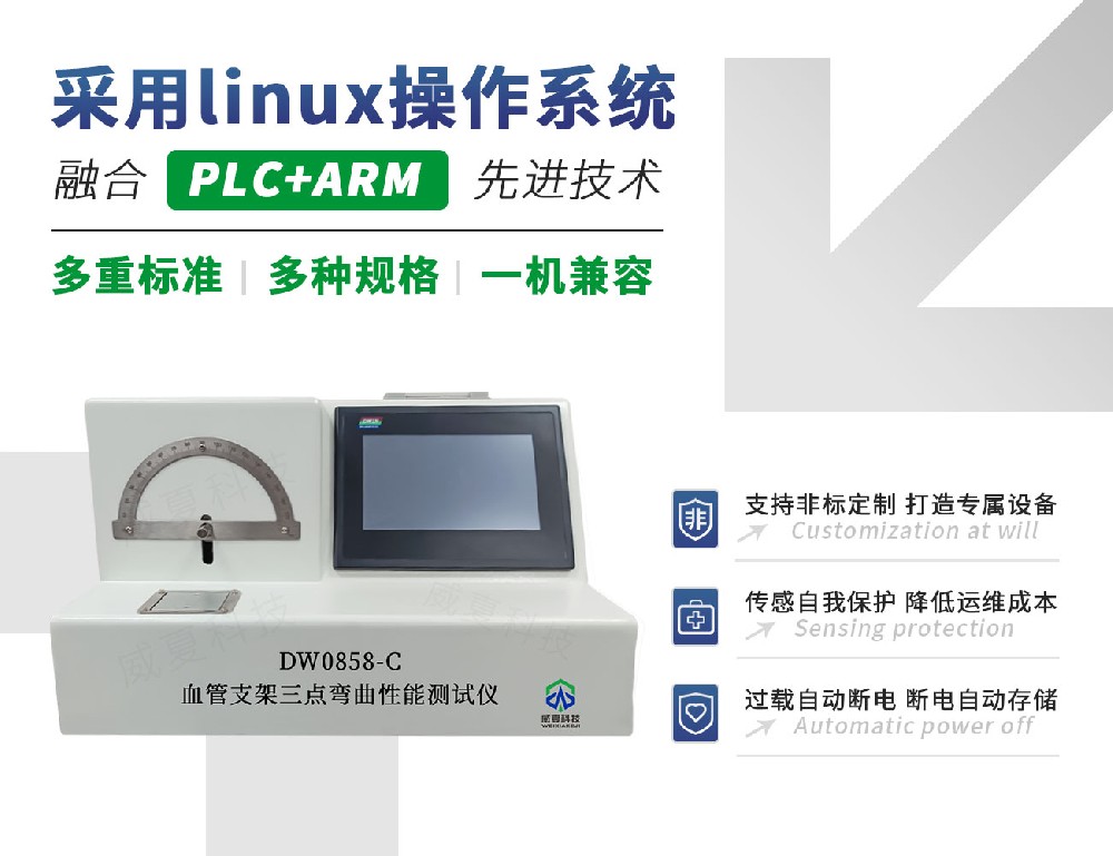 DW0858-C血管支架三點(diǎn)彎曲性能測試儀血管支架三點(diǎn)彎曲性能測試用于評(píng)估支架在彎曲載荷作用下的柔韌性、結(jié)構(gòu)穩(wěn)定性及抗變形能力,是驗(yàn)證支架順應(yīng)性和植入安全性的重要指標(biāo)。檢驗(yàn)血管支架三點(diǎn)彎曲性能推薦威夏科技自主研發(fā)的DW0858-C血管支架三點(diǎn)彎曲性能測試儀。血···