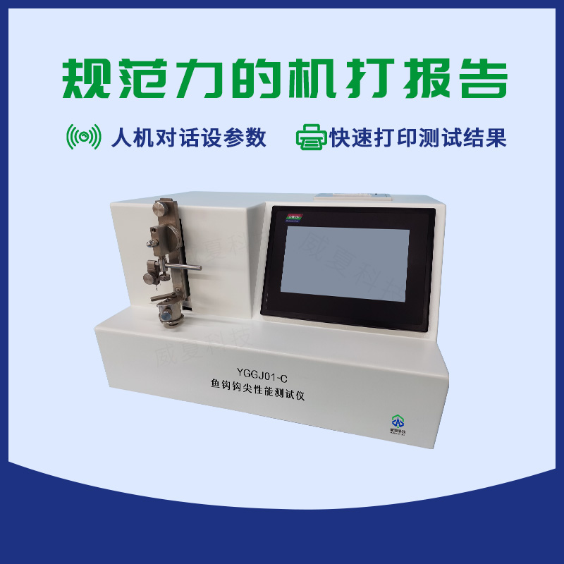 YGGJ01-C魚鉤鉤尖性能測試儀主要用于測定魚鉤的各項物理性能,是鑒定魚鉤性能的重要手段之一。