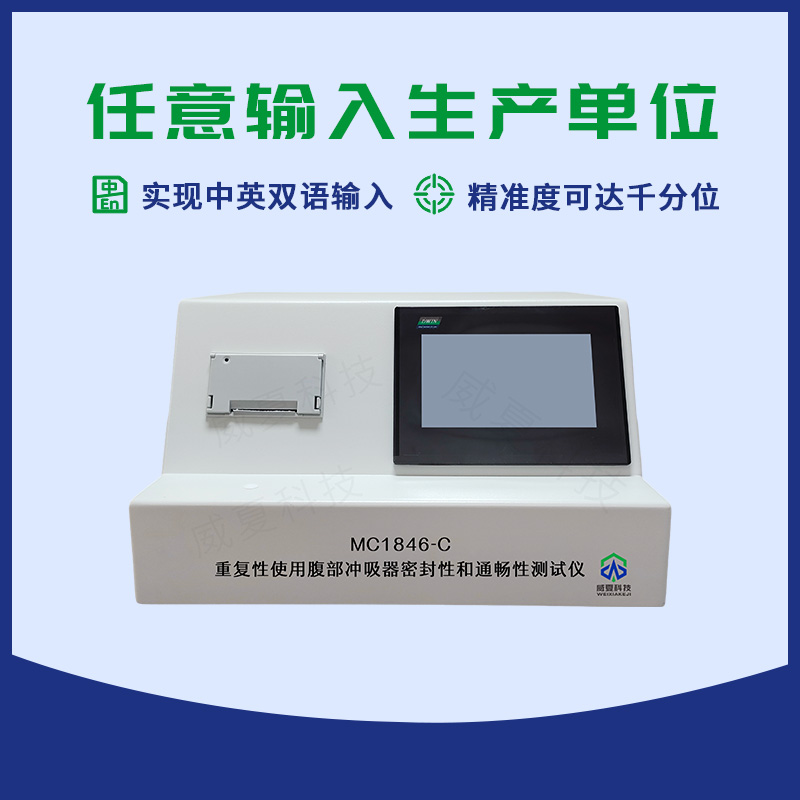 MC1846-C重復(fù)性使用腹部沖吸器密封性和通暢性測試儀采用可編程控制器,觸摸屏,壓力傳感器,加壓裝置,機載打印機等組成,適用于重復(fù)性使用腹部沖吸器。