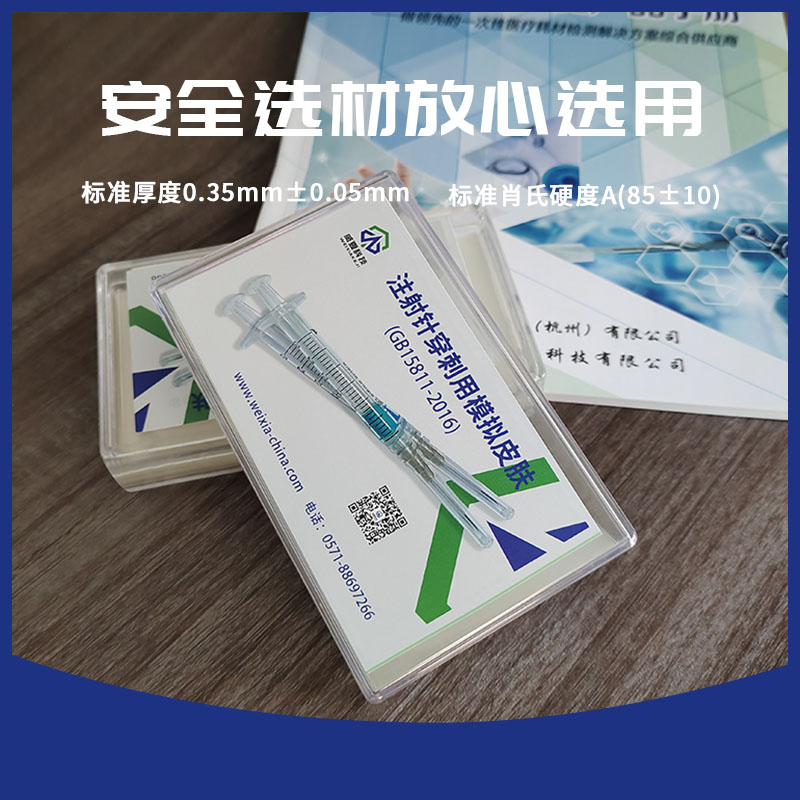 威夏科技注射針穿刺力模擬皮膚用于注射針針尖刺穿力測試儀試驗,也用于留置針、輸液針或活檢針的穿刺檢測,供應(yīng)各大檢測機構(gòu),是全國各大醫(yī)療器材監(jiān)督局實際使用產(chǎn)品,本產(chǎn)品符合GB15811標準規(guī)定。