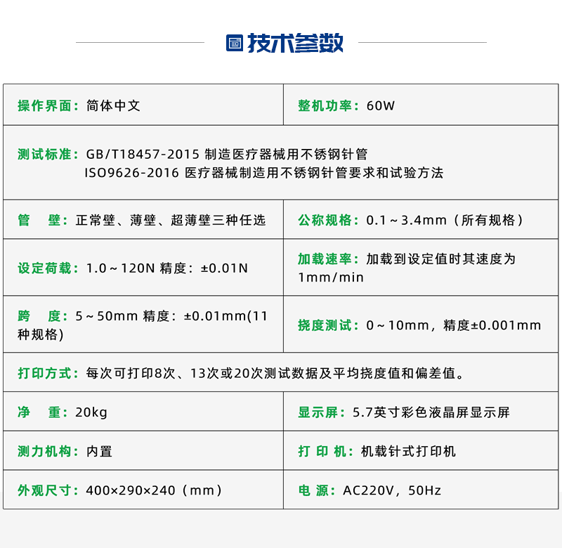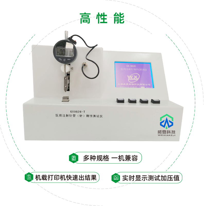 威夏科技 GX9626-T 醫(yī)用注射針管(針)剛性測試儀是國家檢驗(yàn)生產(chǎn)廠家產(chǎn)品性能的高效檢測設(shè)備。醫(yī)用注射針管(針)剛性測試儀主要用于測定醫(yī)用注射針的剛性性能的物理特性,是鑒定醫(yī)用注射針的重要手段之一。測試操控范圍包括:公稱規(guī)格、管壁、跨度、設(shè)定載荷、最大撓度、打印設(shè)定、測試、上行、下行、時間、標(biāo)定。